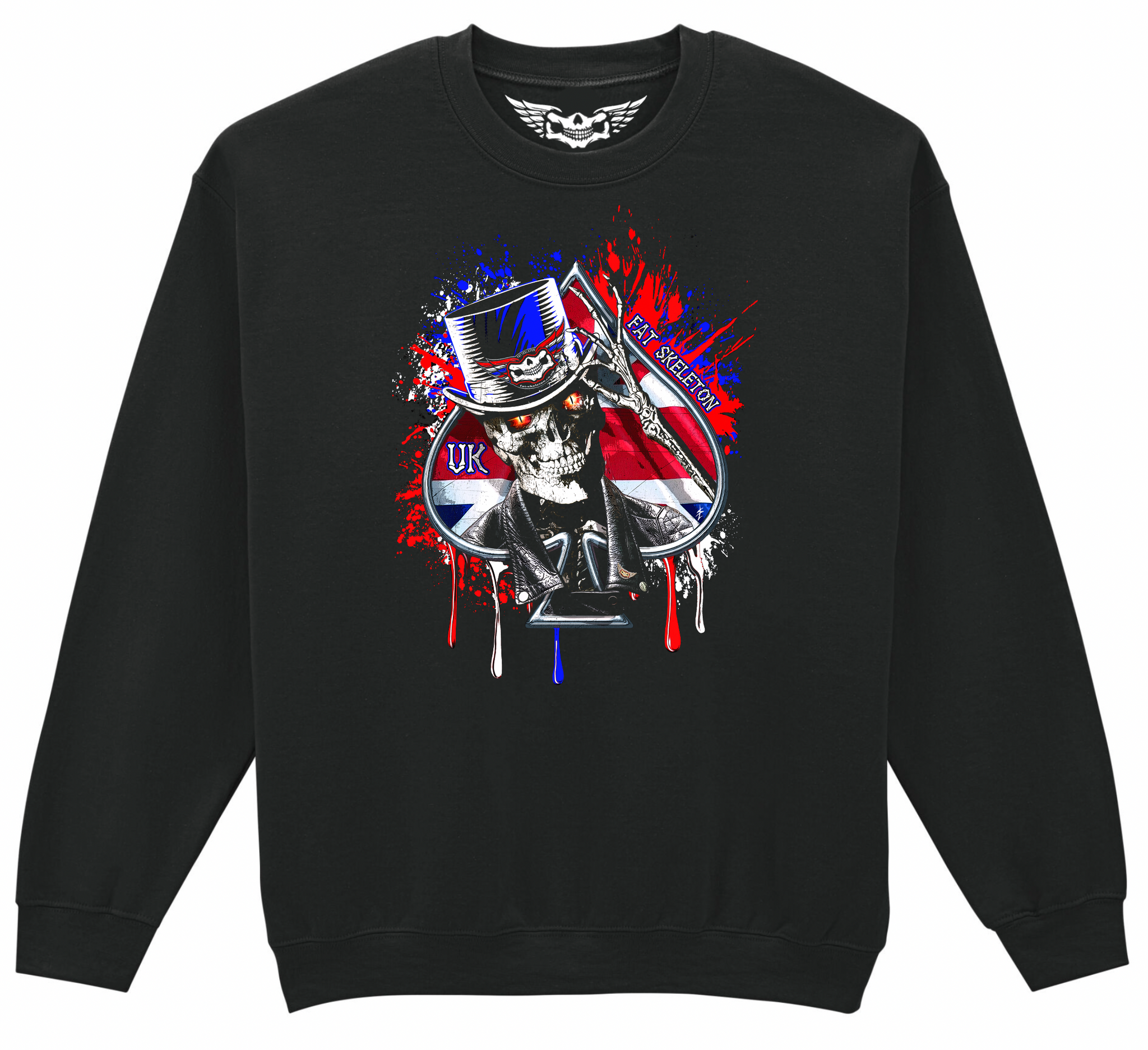 Fat Skeleton Union Jack Top Hat Skull Sweatshirt