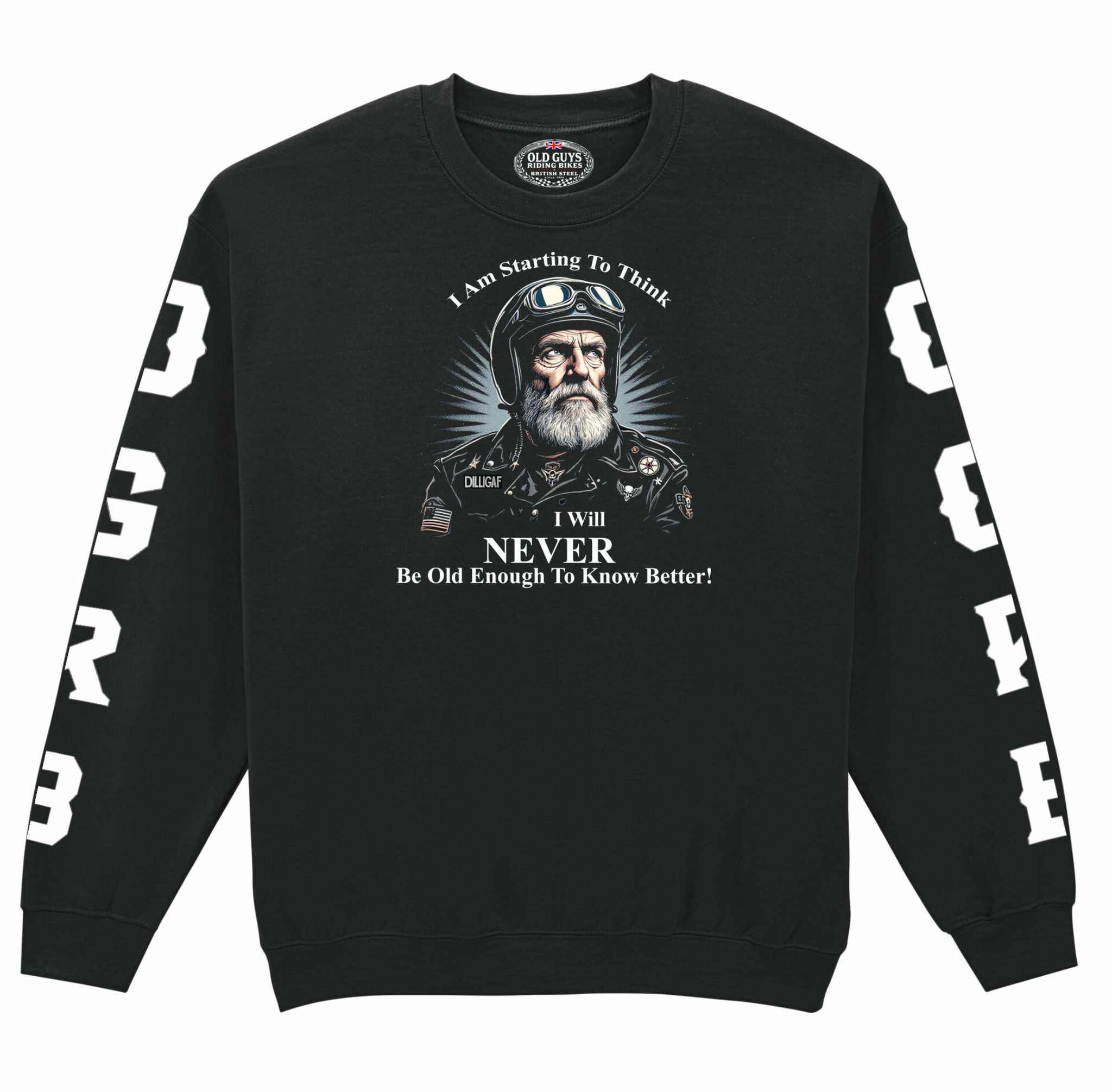 Never Old Enought to Know Better Old Guys Riding Bikes Sweatshirt