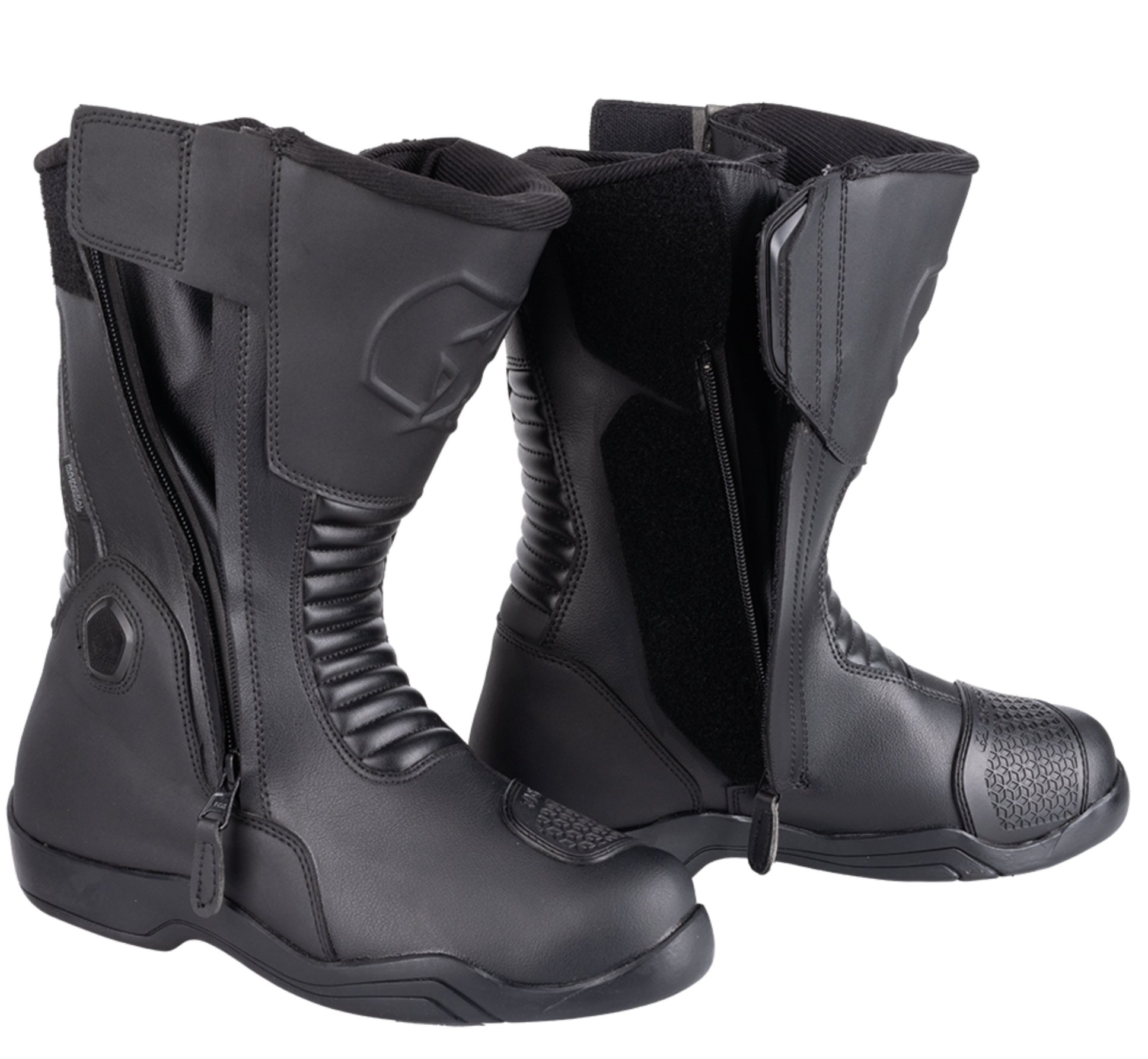 The CE approved Oxford Hunter twin zip boot is a simple, streamlined microfibre touring boot, designed for ride control and comfort in all weather conditions. The adjustable twin zippered opening allows quick and easy fitting. The boot is reinforced with protective elements such as ankle protectors, PU reinforced toe and heel counters and a PU footbed shank. The combination of high fit, internal membrane and waterproof opening system, offer peace of mind when in even extreme weather conditions.