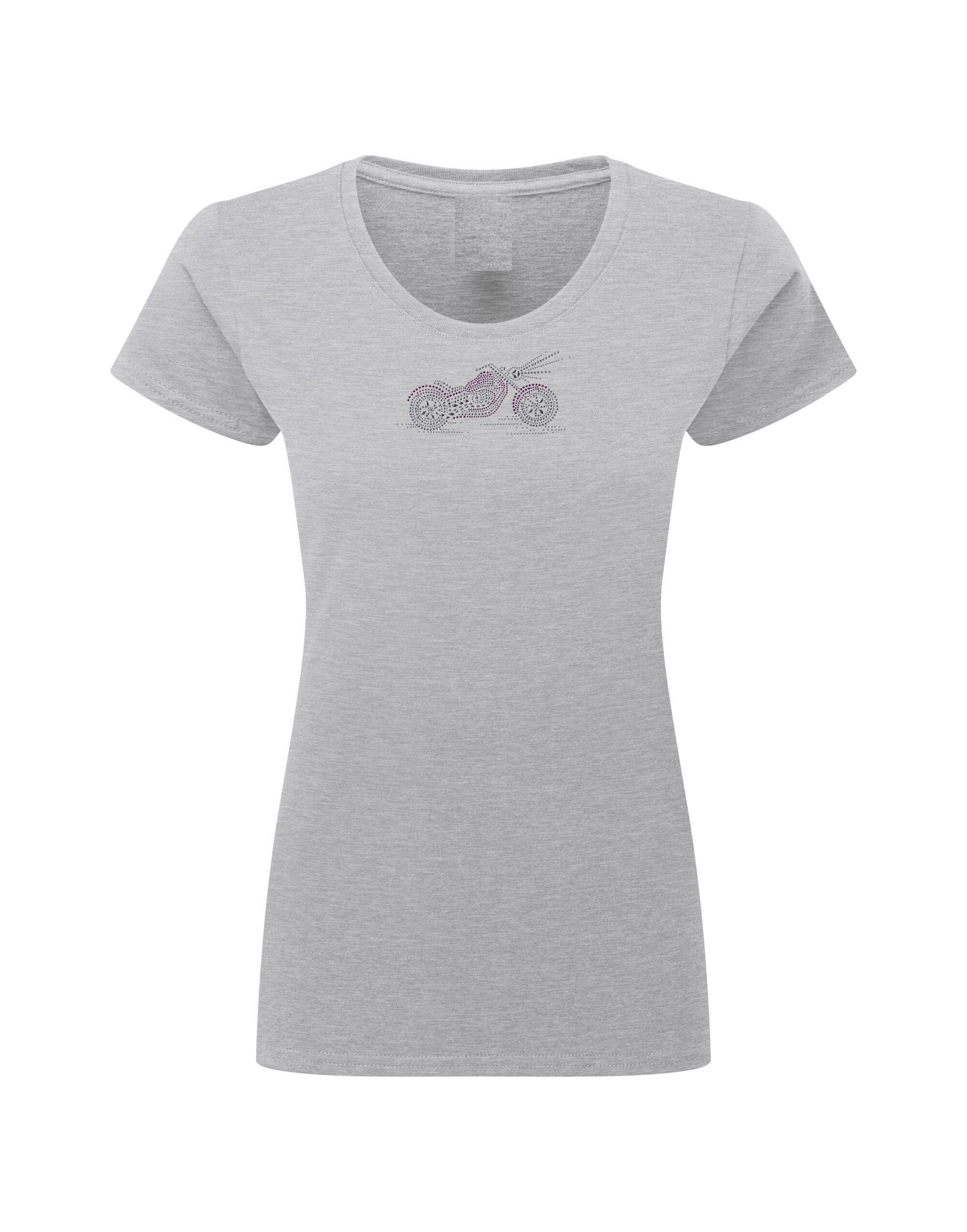 Ladies Biker Purple Bike Coloured Rhinestone Stud T Shirt