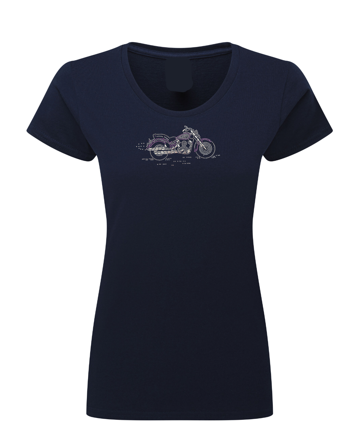 Ladies Biker Purple & Silver Cruiser Coloured Rhinestone Stud T Shirt