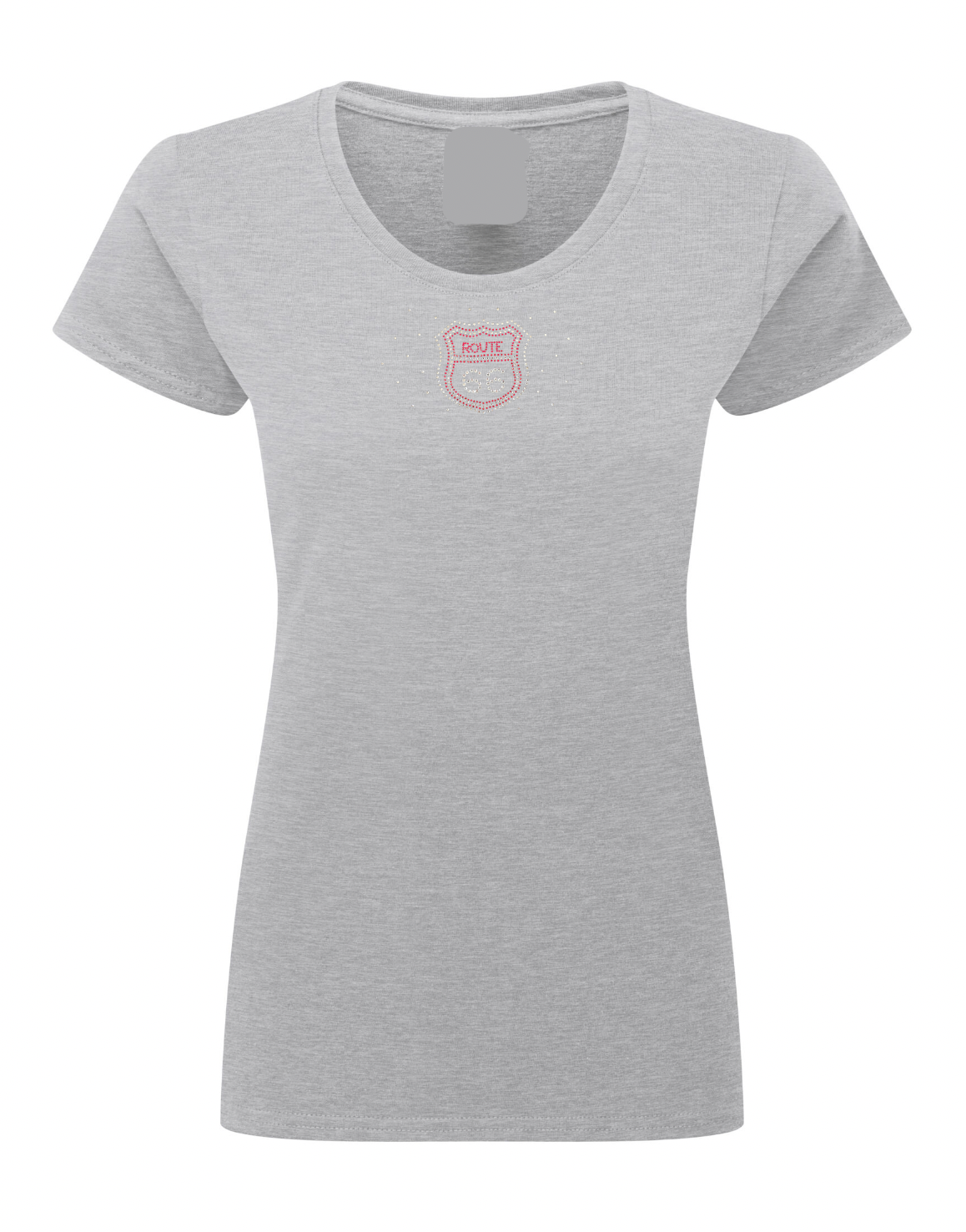 Ladies Route 66 Red & Silver Coloured Rhinestone Stud T Shirt