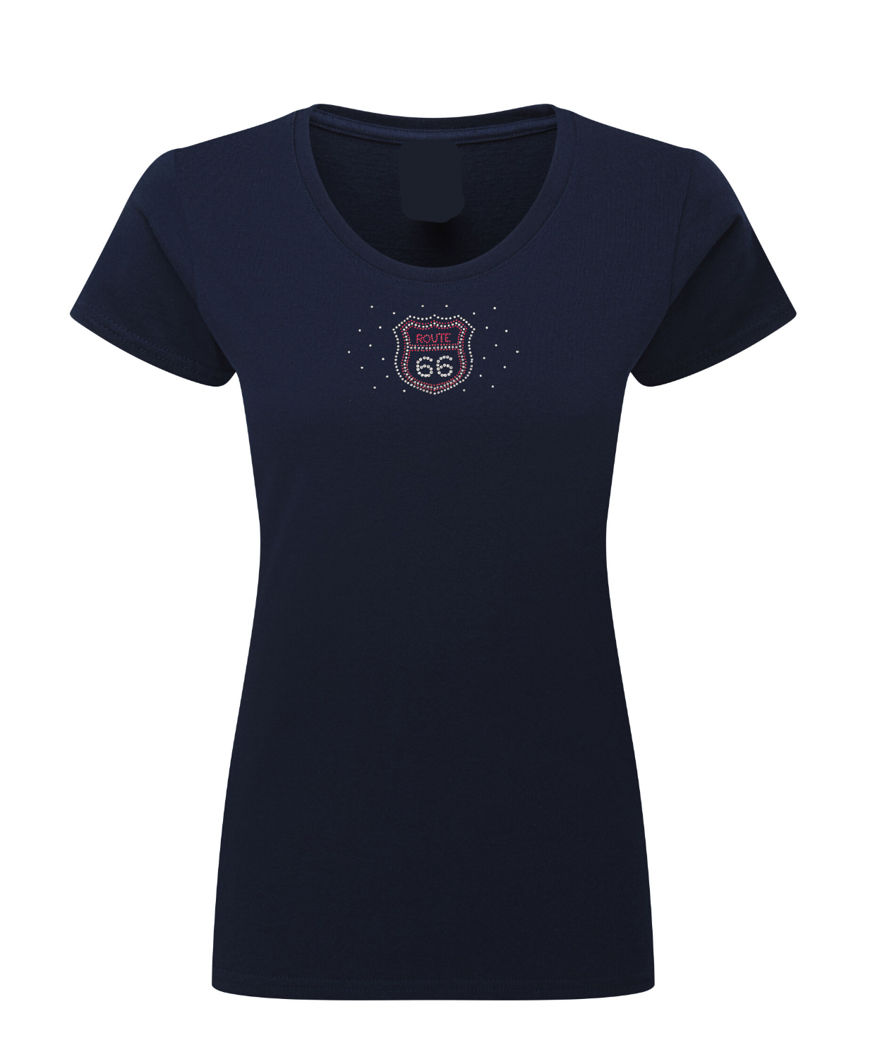 Ladies Route 66 Blue Coloured Rhinestone Stud T Shirt