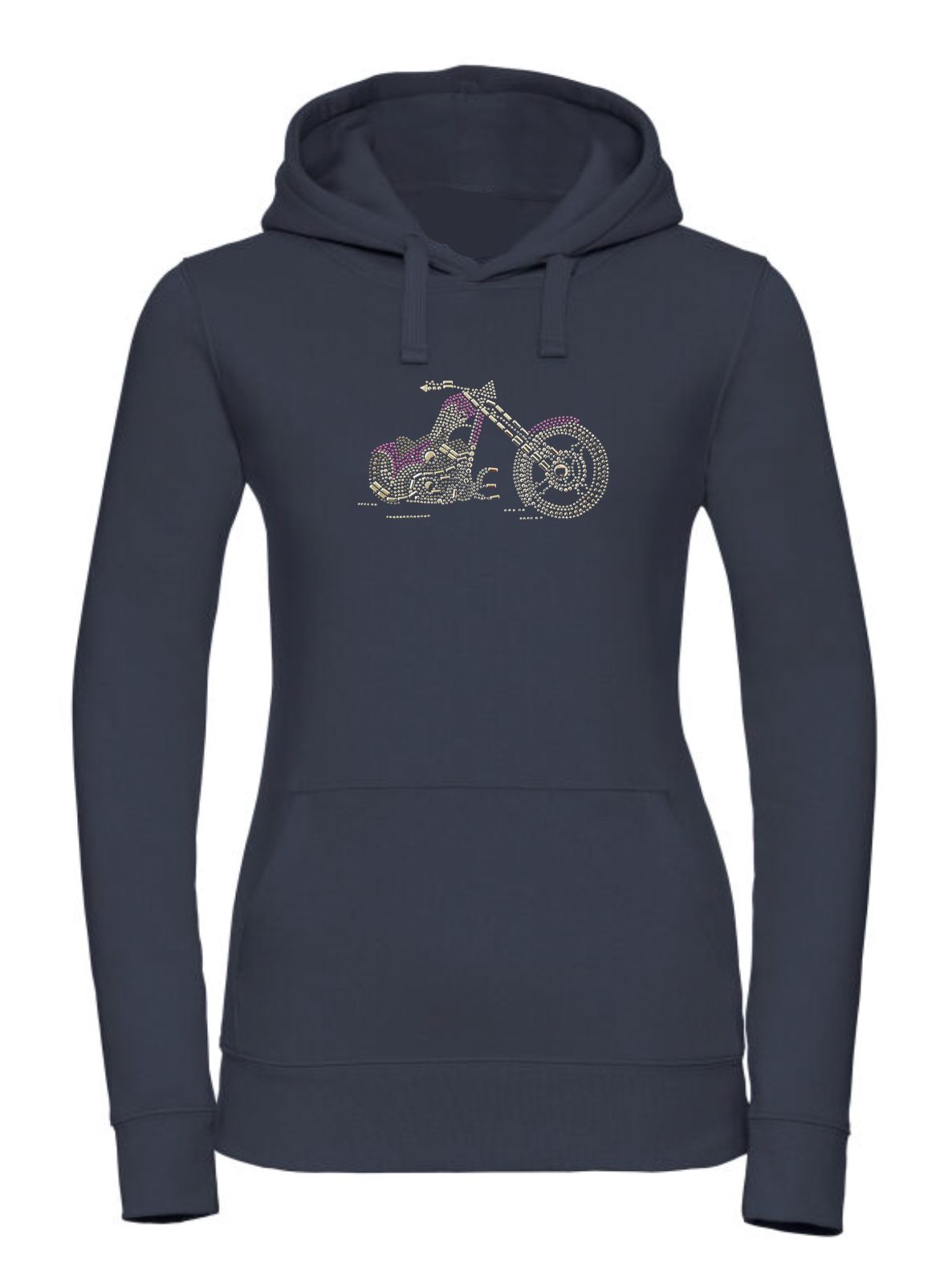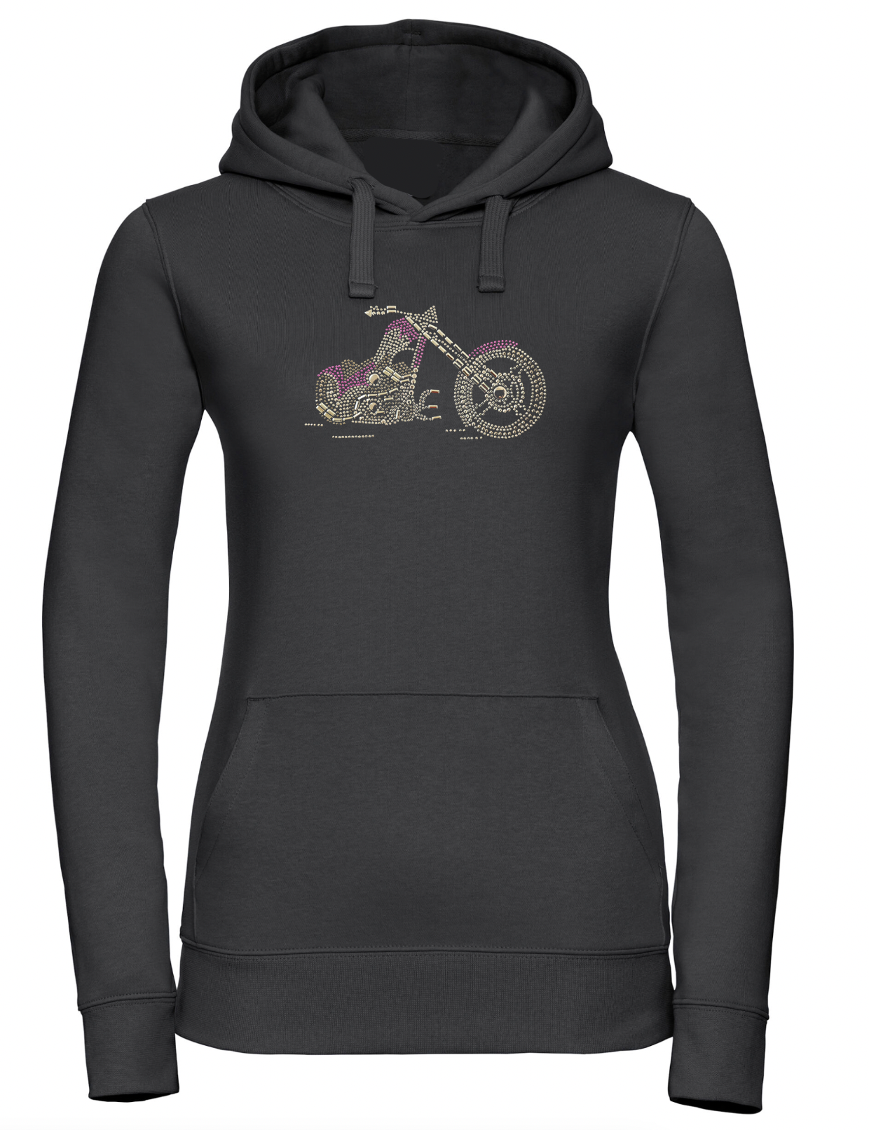 Superb quality ladies fit hoodie with our exclusive stunning vibrant multi coloured rhinestone studs which come alive & shimmer as they catch the light.