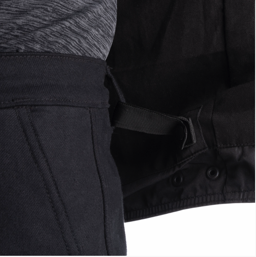 Features CE level 2 shoulder and elbow protectors, belt connection loops and stretch fabric at the underarm. A subtle reflective patch on the sleeve adds a touch of style and practical visibility to the jacket.